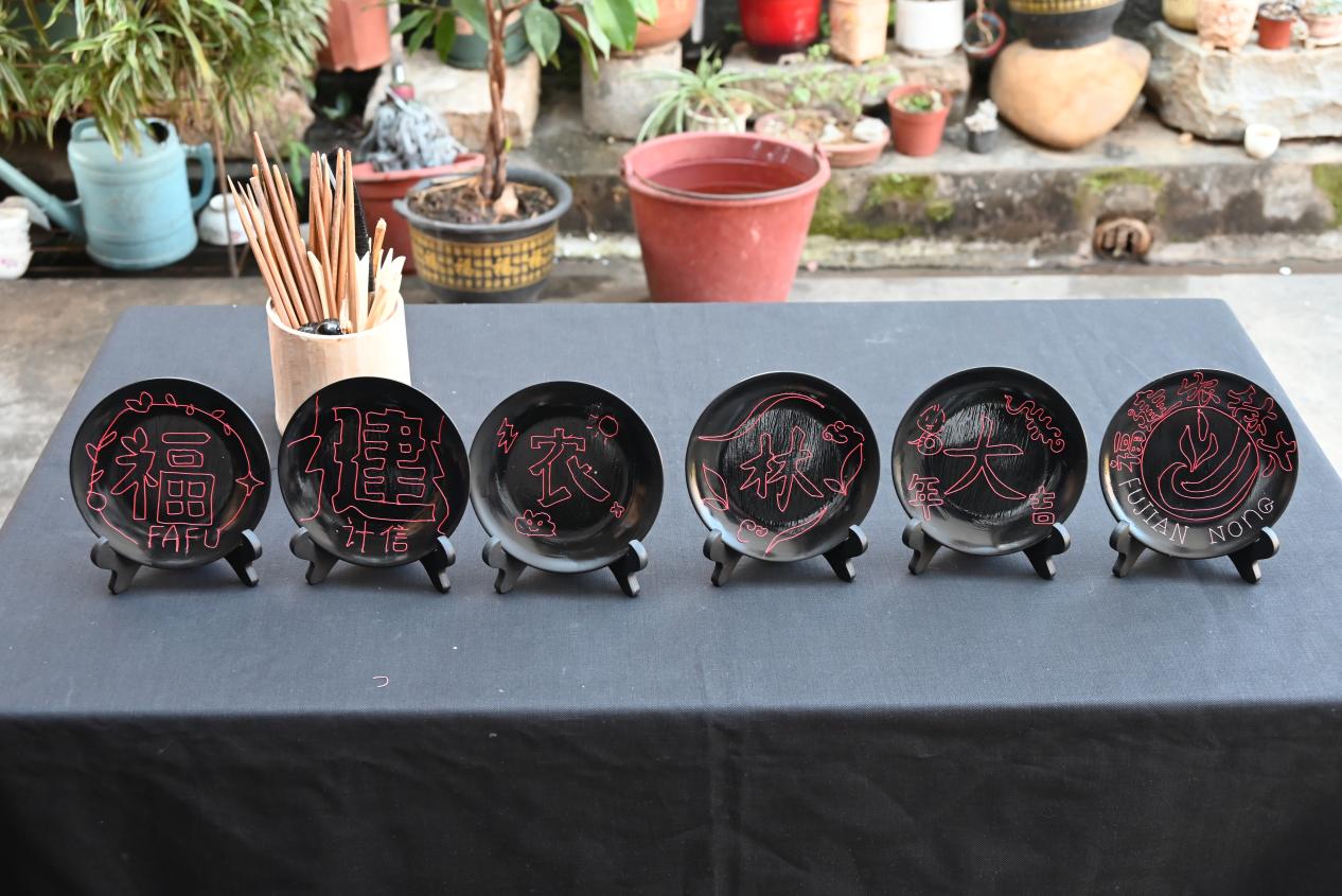 陈老师手法娴熟,线条流畅,将漆线雕的精细工艺展现得淋漓尽致。队员们也跃跃欲试,亲手尝试,虽显笨拙,但热情高涨,对漆线雕这一非物质文化遗产有了更深的理解和感悟。