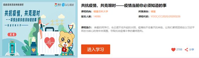 该视频通过新型冠状病毒的感染症状、传播途径、防范措施、疫情下的心理调试、居家生活方式、毕业生问题等方面进行讲解,希望同学们做好防范措施,进行科学的引导和教育,坚定信心,紧密团结在以习近平同志为核心的党中央周围,夺取抗击疫情斗争的最终胜利,促进大学生思想政治教育工作的创新发展。