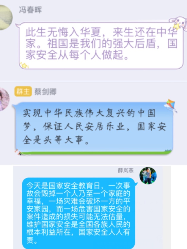 本次活动,我们通过观看专题片视频学习,深刻认识全民国家安全教育日是为了提醒我们认清国家安全形势,增强危机优患意识,树立国家安全观念。国家安全是国家发展的最重要基石,人民福祉的最根本保障。“安而不忘危,存而不忘亡,治而不忘乱。”国家安全与我们息息相关。作为一名人民教师,更应责无旁贷地肩负起时代的力量,行动起来,树立正确的国家安全观,切实提高自身的国家安全意识、防范意识,守住法律底线,不触碰法律红线,自觉把维护国家安全当作应尽的义务和责任!