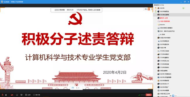 计算机科学与技术专业学生党支部召开“确定入党积极分子述责答辩”网络会议