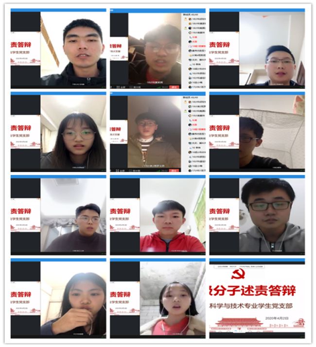 4月2日,计算机科学与技术专业学生党支部通过网络召开“确定入党积极分子述责答辩”会议。会议由党支部书记裴文庆主持,支部全体党员参加会议。