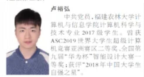 我院卢裕弘同学入选人民日报本专科生国家奖学金获奖学生优秀代表名录