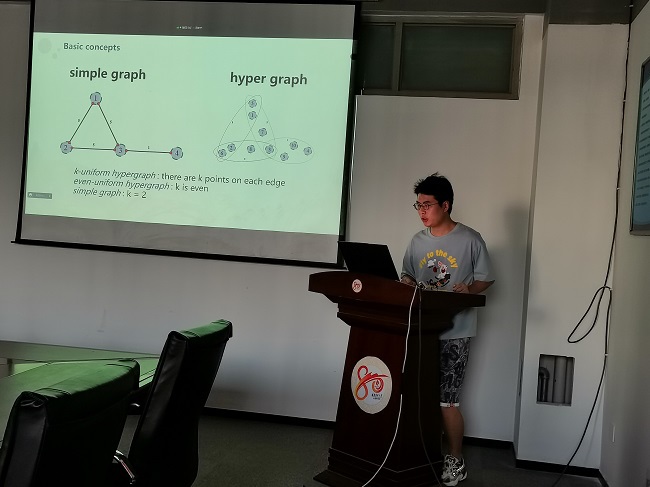 刘方猛同学汇报结束后,各位老师和同学踊跃提出了自己的问题和建议。魏丽芳老师对如何使用拉普拉斯矩阵进行超图分割的方法进行进一步提问。董恒老师对超图的概念进行进一步解释。