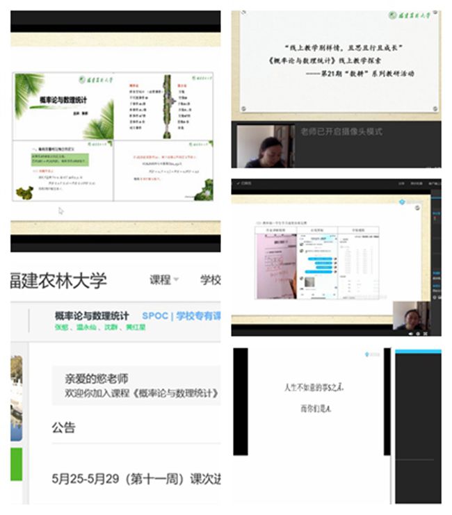张慾老师在2019年立项的省级线上线下混合课程基础上,与温永仙教授、沈群、黄红星及蔡水英等多位老师建立了本学期概统在线课程团队。团队经过多次教学研讨和设计,针对疫情期间学习与教学的特殊性,在本轮线上教学阶段实现了爱课程平台与腾讯课堂直播教学的深度融合。
