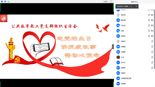 公共数学教工党支部开展 “迎党的生日、讲战役故事、悟初心使命”组织生活会