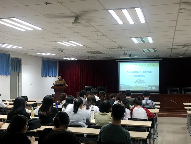 2020年10月5日,龙8在线登录官网-龙8(中国)院长陈日清教授在田家炳楼C413教室作了题为《在全球化背景推动下,中国5G战略实现跨越式领先》的新一代信息技术专题讲座,2020级全体研究生和2017级网络工程专业学生参加了本次讲座。