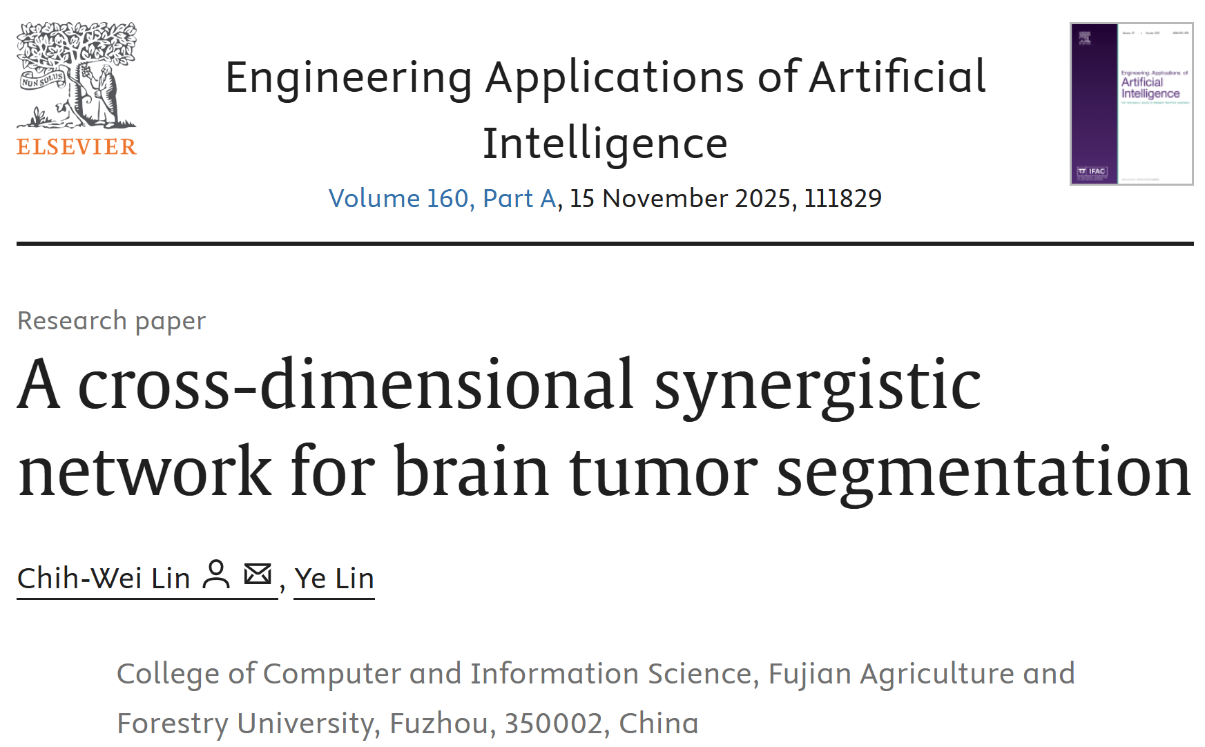 近日,龙8在线登录官网-龙8(中国)林志玮教授团队在国际知名期刊 Engineering Applications of Artificial Intelligence(人工智能工程应用)在线发表了最新研究成果,论文题为"A Cross-dimensional Synergistic Network for Brain Tumor Segmentation"(跨维度协同注意力网络在脑肿瘤分割中的应用)。该研究提出了一种创新性的跨维度协同注意力网络(CS-Net),有效提升了脑肿瘤影像分割的精度和鲁棒性。