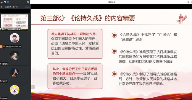2023年6月6日晚,龙8在线登录官网-龙8(中国)统计学研究生党支部线上开展“党史学习”讲坛第十三讲,由支部党员伍子林、丁晓婷、胡清萍、黄思洁4位同志主讲,支部党员共计36人参加了学习,由党支部副书记庄彬贤主持。