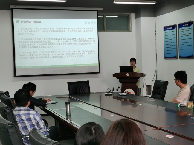 孙琪同学的汇报主题为“基于深度学习的医学图像分割方法研究”。汇报从研究意义、研究内容和总结与展望三个方面展开,介绍了三种用于医学图像分割的详细内容和实验分析。
