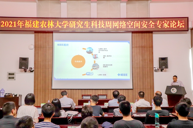 5月20日下午,我院在明德楼龙岩厅举办了主题为“提升网络安全素养,谱写智慧农林新篇”的2021年福建农林大学研究生科技周网络空间安全专家论坛,并举行“闽江学者奖励计划”讲座教授聘任仪式。应邀出席论坛与聘任仪式的特邀专家主要有:IEEE China Office赵永前总监,清华大学出版社期刊中心副主任、《Tsinghua Science and Technology》编辑部主任陈禾,IEEE中国理事会副主席、中国电子学会理事、中国电子学会信息安全专家委副主任委员、“闽江学者奖励计划”王潮教授,三位特邀专家为本次论坛作了精彩的学术前沿报告。龙8在线登录官网-龙8(中国)院长陈日清、党委副书记张明辉、副院长刘金福、副院长鲍玲鑫以及70多名学院师生参加了本次论坛。论坛由学院网络空间安全系主任纪祥敏主持。