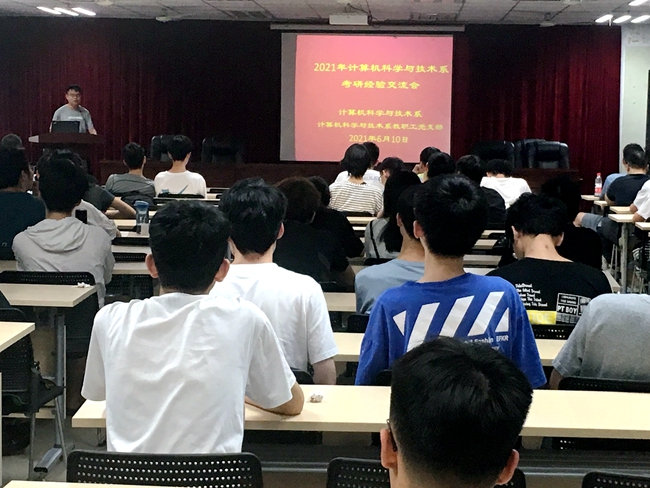为帮助同学解决考研遇到的问题和困惑,2021年6月10日晚上,计算机科学与技术系及教工党支部联合网络工程专业学生党支部在田家炳楼举行考研经验交流会。此次交流会参会人员有计算机科学与技术系教工支部书记魏丽芳、党员杨长才、软件工程系副主任林莉莉等三位教工党员、卢裕弘(17级计科专业、保送浙江大学)、林正轩(17级计科专业、保送浙江大学)、温宗恒(17级计科专业、考研至厦门大学)、17级网工林志楷(17级网工专业、考研至暨南大学)、潘蔚东(17级计科专业、考研至福州大学)、工肖正辉(17级软工专业、考研至南方科技大学)以及18、19级计科系及软工系学生等100余人。交流会由计算机科学与技术系杨长才主持。