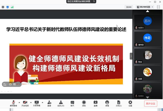 会上,教师们围绕“弘扬高尚师德、潜心立德树人”纷纷发表了学习的心得体会。党支部书记陈梅雯表示,教师要带头践行社会主义核心价值观,做学生健康成长的指导者和引路人,不断提高业务能力和教育教学质量,努力成为业务精湛、学生喜爱的高素质教师。大家一致认为,作为工作在一线的公共基础课教师,教研室的老师们以立德树人为己任,执着于教书育人,把这些责任体现到平凡、普通、细微的教学中,努力当好学生成长的引路人。